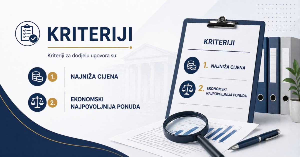 У случају да се уговорни орган опредијели за критеријум „најнижа цијена“, тада ће све остале услове утврдити у тендерској документацији, као што су нпр. висина осигураних сума за осигуране случајеве („смрт усљед несретног случаја“, „смрт усљед болести“, „инвалидитет“ и сл.), као и друге услове који су примјерени услузи осигурања лица. Исто тако и за други лот који се тиче осигурања имовине. Само на тако једнакој основи за све понуђаче, понуђачи нуде (само) цијену (по лоту) која је у овом случају основ за додјелу уговора за оба лота.
